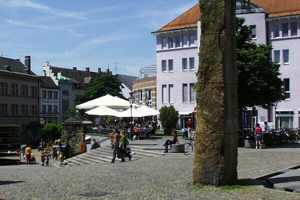 in FreiburgDer Freiburger Augustinerplatz ist der Treffpunkt schlechthin. Abends sitzen viele junge Leute auf den Treppen und genießen das mediterrane Wetter in lauen Sommernächten.