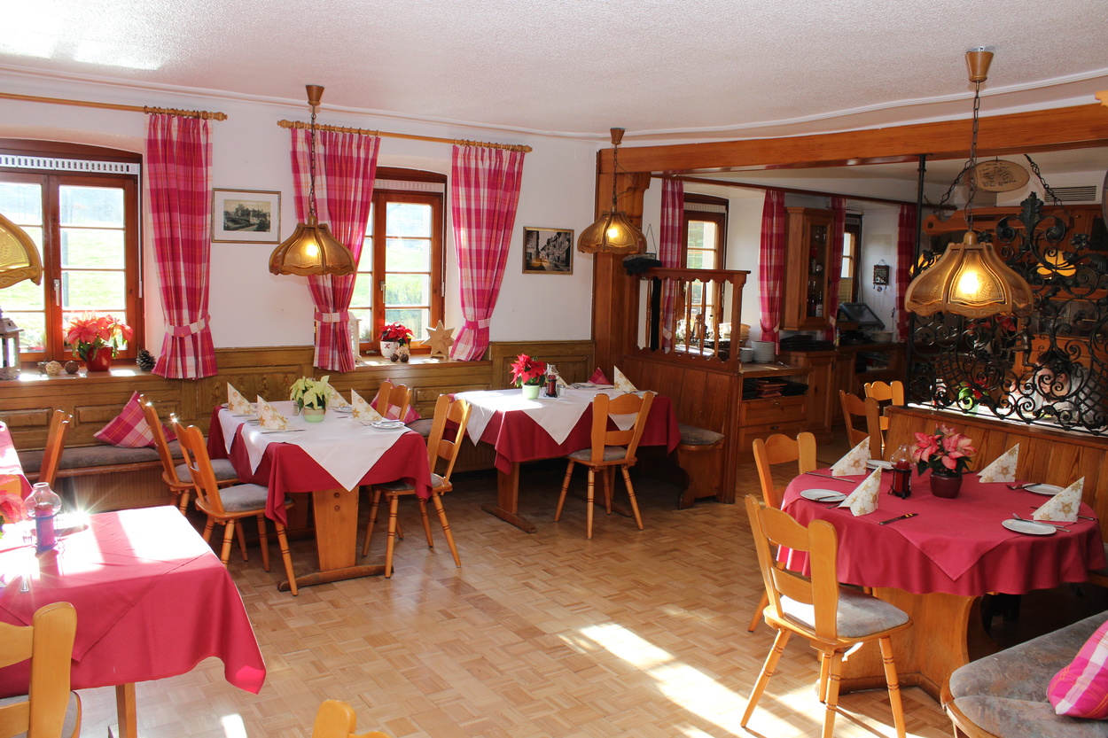Starten Sie mit einem ausgiebigen Frühstücksbuffet in unserem Wintergarten in den Tag, erkunden Sie die idyllische Umgebung und lassen Sie sich abends in unserem Restaurant mit Wildspezialitäten der badischen Küche verwöhnen.